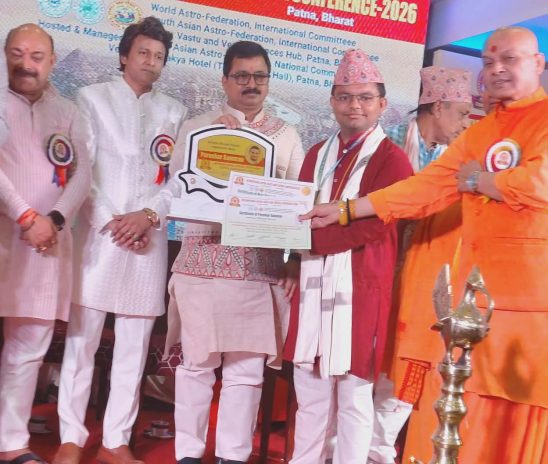 पटना, भारत । नेपाल ज्योतिष परिषद् केन्द्रीय समितिका सचिव समेत रहेका युवा ज्योतिषी शिवलाल पौडेल भारतको पटनामा आयोजित अन्तर्राष्ट्रिय ज्योतिष वास्तु तथा तन्त्र-सम्मेलन २०८२ को अवसरमा पराशर अवार्ड २०८२ बाट सम्मानित भएका छन् । अर्घाखाँची जिल्ला पाणिनी गाउँपालिका वडा नम्बर ०६ धातिवाङ्ग स्थायी निवास भै हाल काठमाडौँमा बस्दै आएका पौडेल नेपाल संस्कृत विश्वविद्यालय वाल्मीकि विद्यापीठबाट फलित ज्योतिष विषयमा स्नातकोत्तर आचार्य तह उत्तीर्ण गरेका छन् । नेपालमा ज्योतिषी संघसंस्थाहरुमाझ निकै नै लोकप्रीय पौडेल नेपाल ज्योतिष परिषद् अर्घाखाँचीको सदस्य, संगठन सचिव, लुम्बिनी प्रदेश पार्षद सदस्य, केन्द्रीय पार्षद सदस्य, केन्द्रीय सदस्य, प्रवक्ता हुँदै अहिले सचिव पदको जिम्मेवारीमा छन् । उनले सम्मान ग्रहण गरेपछि […]