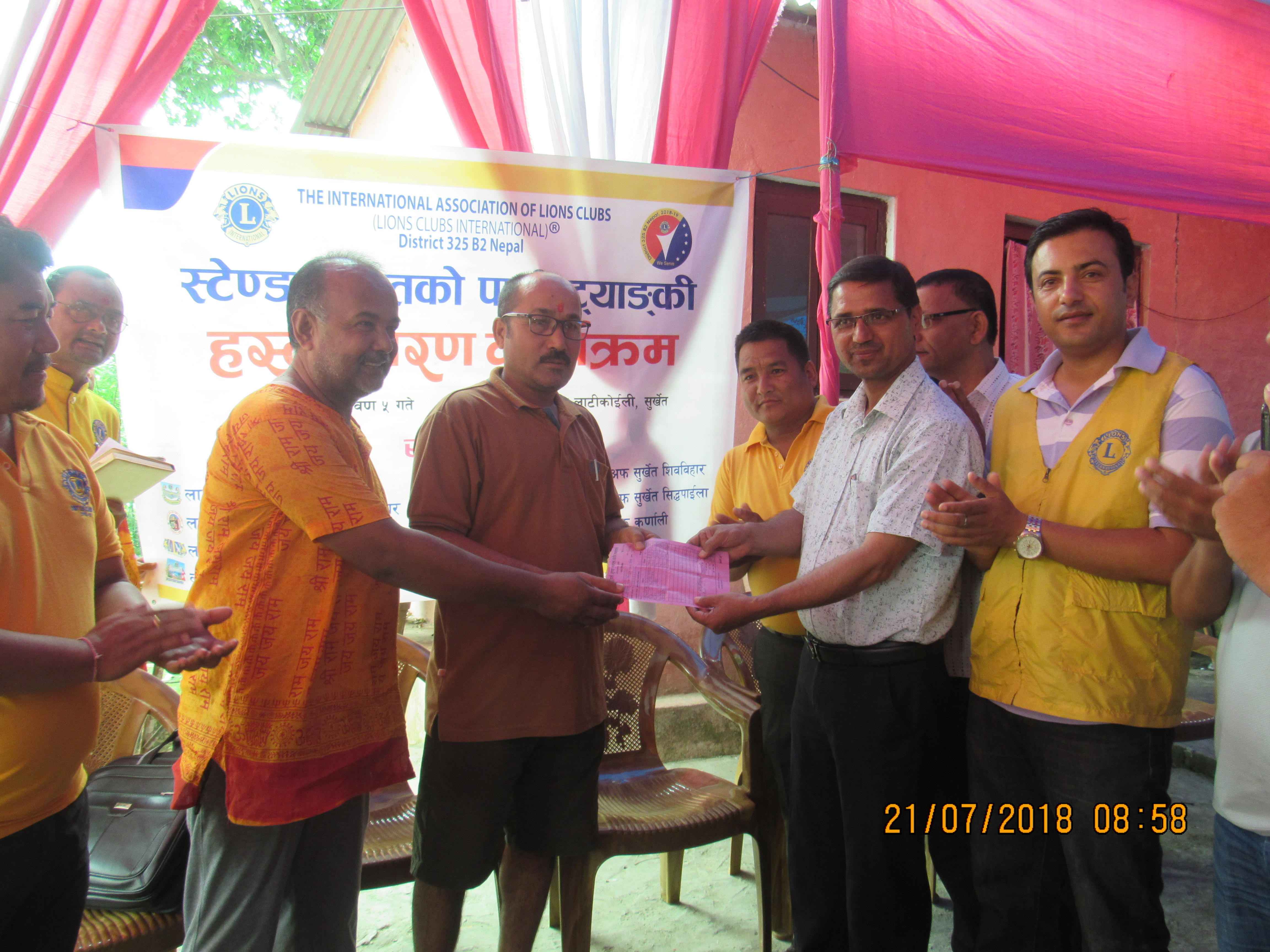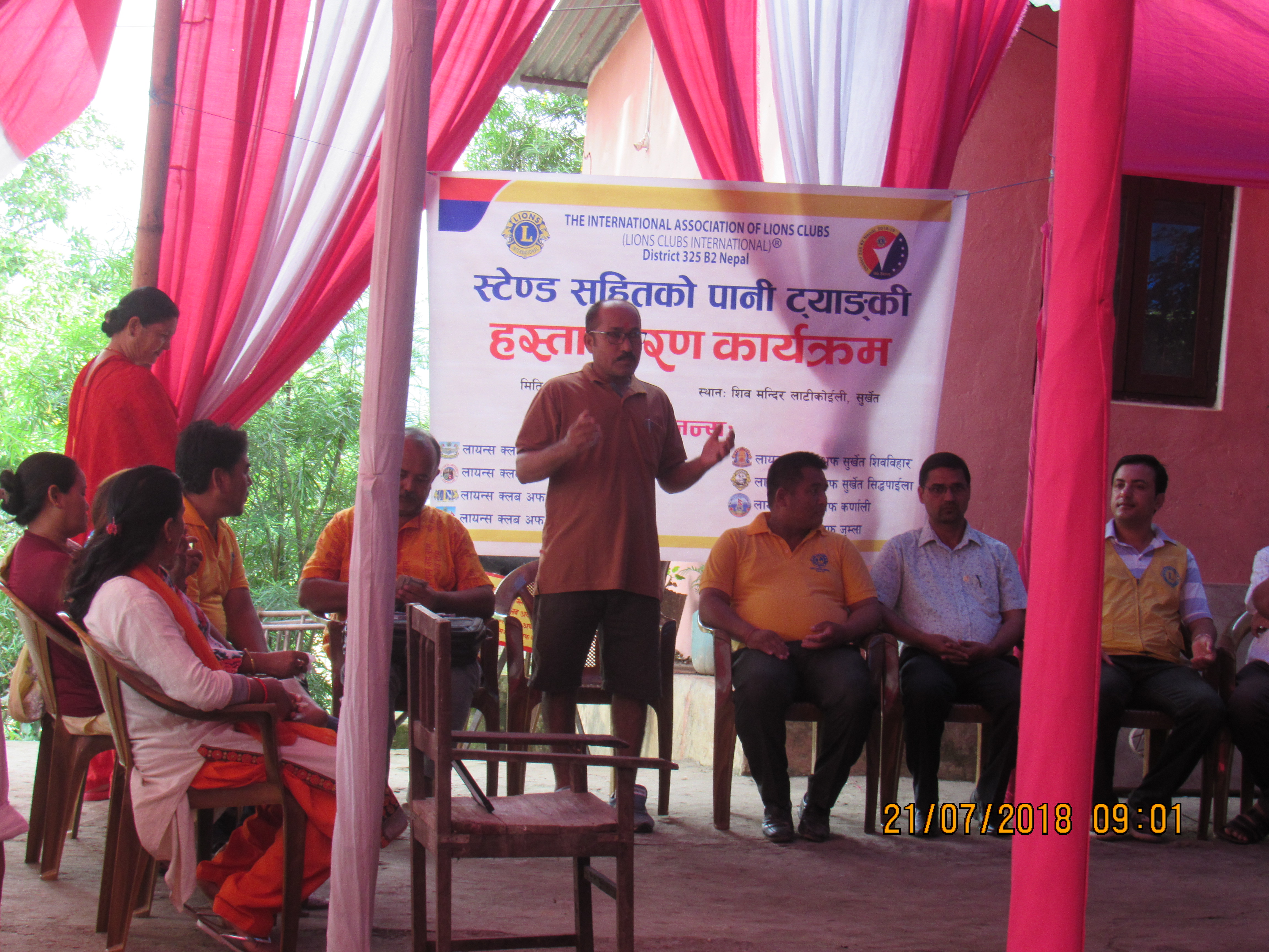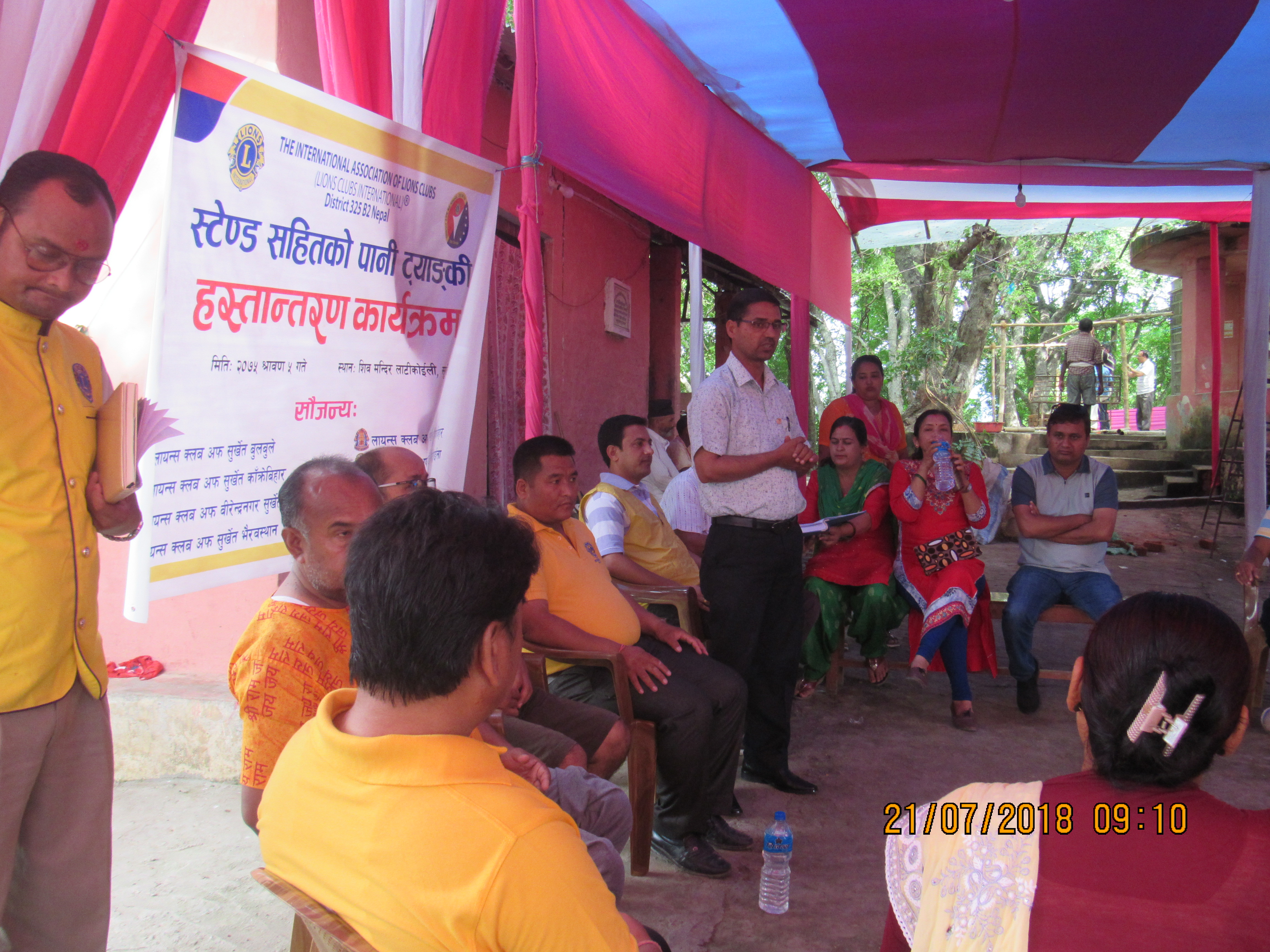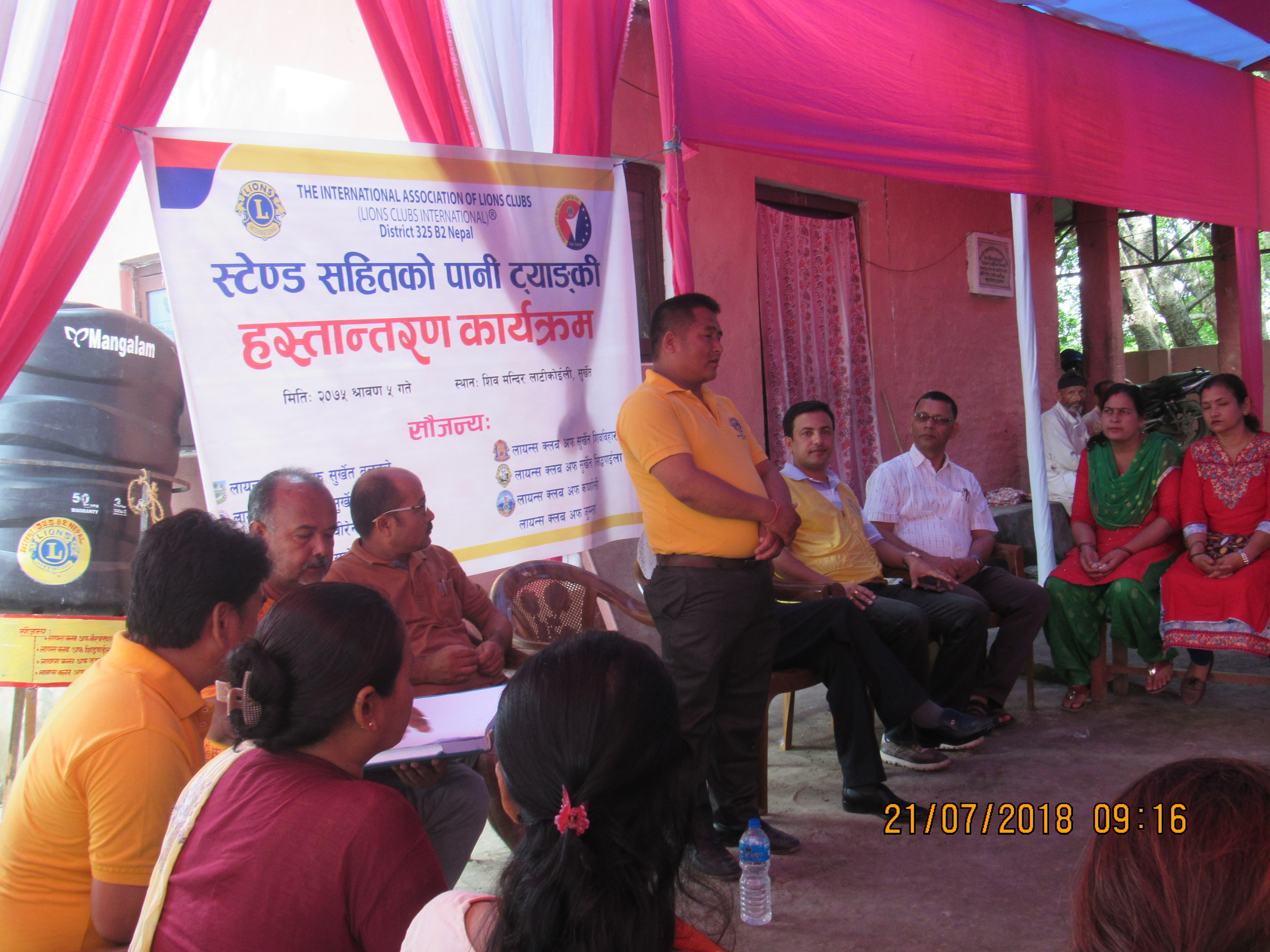 लान्यस क्लब अफ सुर्खेत, बुलबुलेका अध्यक्ष लायन्स दलबहादुर गुङ्गको अध्यक्षतामा सम्पन्न कार्यक्रममा, डिस्ट्रीक चिफ लायन्स बिजय पराजुली, वडा नं.०९का वडा अध्यक्ष सुरेश मानन्धर, समाज सेवी डम्मर बिक्रम जि.सी., एजिओ लायन्स कमल नेपाल, एरिया को–ओडिनेटर लायन्स धनकुमारी खरेल, फ्यामिली उमन को–अडिनेटर एवंम् डिस्ट्रीक को–ओडिनेटर लायन्स कल्पना कार्की, डिस्ट्रीक को–ओडिनेटर लायन्स किशोर रेग्मी, डिस्ट्रीक को–ओडिनेटर लायन्स भद्र भण्डारी , डिस्ट्रीक को–ओडिनेटर लायन्स गौमाया फौजा, जोन चियर पर्सन लायन्स नवराज गुरुङ्ग, लायन्स क्लब अफ सुर्खेत शिबबिहारका अध्यक्ष प्रवेशमान मानन्धर, लायन्स क्लब अफ काक्रेबिहारका अध्यक्ष लायन्स शारदा शेर्पा , लायन्स क्लब अफ भेरीका अध्यक्ष श्याम थापा, लायन्स क्लब अफ सुर्खेत, वीरेन्द्रनगरका अध्यक्ष लायन्स विनु सि. भास्कर, लायन्स क्लब अफ सुर्खेत, सिद्धपाईलाका अध्यक्ष लायन्स चन्द्रा भट्टराई, लायन्स क्लब अफ सुर्खेत, कर्णालीका अध्यक्ष लायन्स सिता शर्मा लगाएतको उपस्थित रहेको कार्यक्रममा कार्यक्रमका प्रमुख अथिती डिस्ट्रिक एडभाईजर लायन्स टिकाराम चपाईले शिब मन्दिर मुल समितिका अध्यक्ष विधाभूषण मानन्धरलाई स्टेण्ड सहितको पानी ट्याङ्की हस्तान्तरण गरेको थिए ।