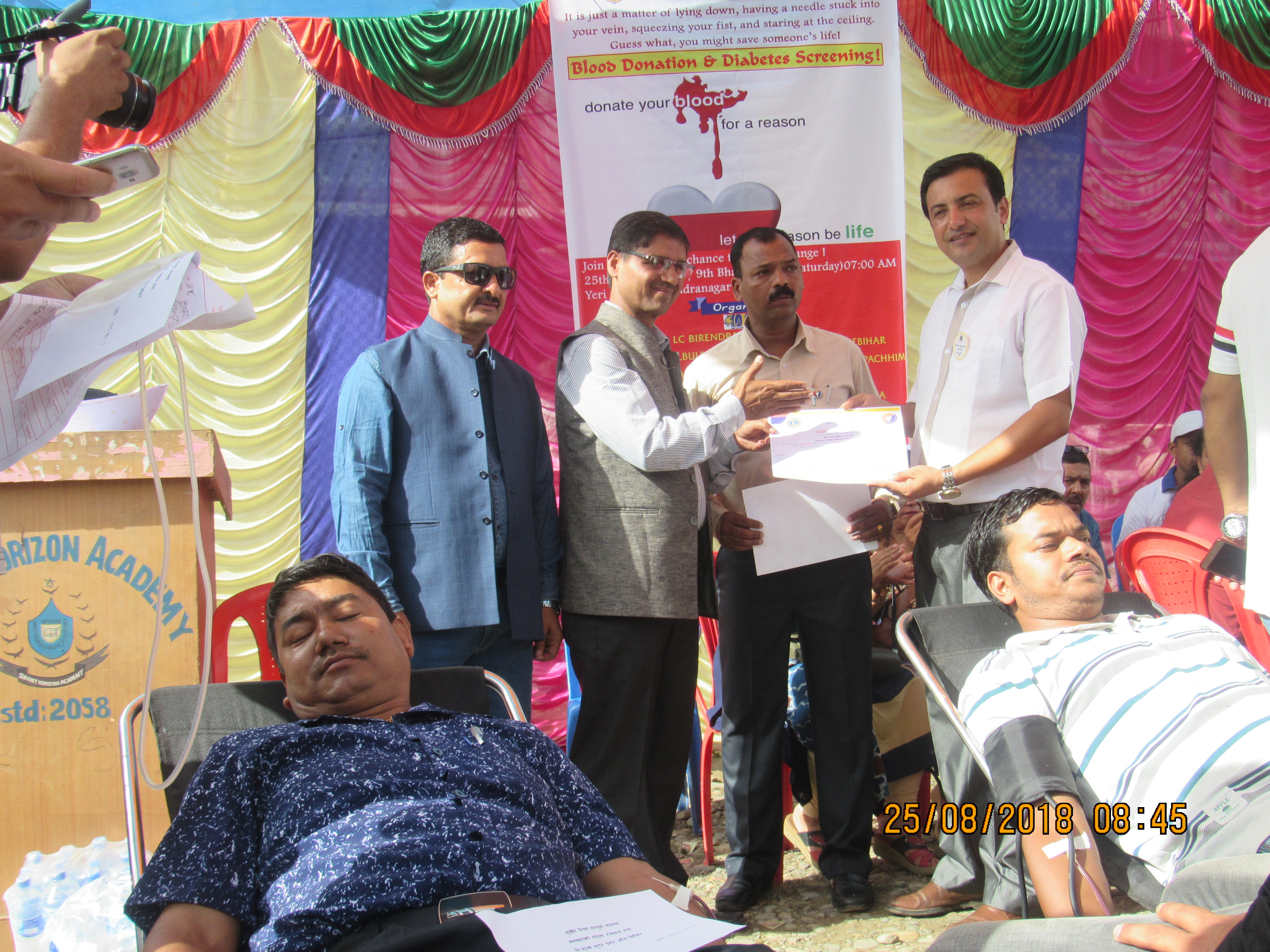 डिष्ट्रिक एडभाइजर लायन्स टिकाराम चपाईको प्रमुख आतिथ्यता, डिस्टिक चिफ एमजेएफ लायन्स बिजय पराजुली र एओजि लायन्स कमल नेपालको बिशेष आथित्य, रिजन चियर पर्सनहरु लायन्स हरिहर बस्नेत लायन्स वासना थापा, जोन चियर पर्सनहरु लायन्स बिन्दु नेपाल, लायन्स खगिसरा शाही, लायन्स नजराज गुरु, लायन्स दिपेन्द्र ढकाल, डिस्टिक को–अडिनेटरहरु लायन्स किशोरकुमार रेग्मी, लायन्स बासुदेव शर्मा, लायन्स भद्र भण्डारी, लायन्स बसन्त रेग्मी, लायन्स भानुभक्त खड्का, साइड फस्ट को–अडिनेटर लायन्स सरस्वती बस्नेतको आतिथ्यमा सम्पन्न रक्तदान एवंम् निशुल्क मधुमेह जांचको कार्यक्रमको आयोजना गरिएका थियो ।