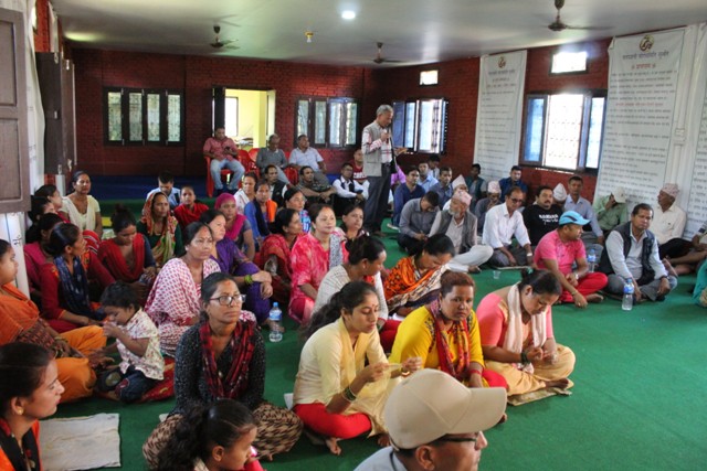 कार्यक्रममा समाजसेवी नन्द भण्डारीले विकास निर्माणका कार्यहरु गर्दा होस् वा उपभोक्ता तथा निर्माण समितिको गठन गर्दा फरक दृष्टिकोण राख्न नहुने बताए । उनले भने, ‘उपभोक्ता समितिको गठनमा सबै पक्षलाई समेट्न जरुरी छ ।’ हाम्रो भन्ने भावनाबाट जागृत हुन सकेमा हामीले तिरेको करको सदुपयोग हुने उनको भनाई थियो ।