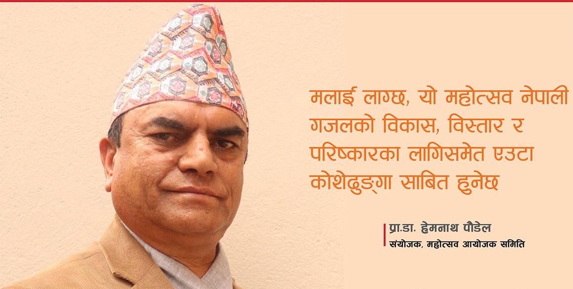(नेपाल प्रज्ञाप्रतिष्ठानका काव्य विभाग प्रमुख तथा राष्ट्रिय गजल महोत्सव, २०७६ का संयोजक प्रा.डा. हेमनाथ पौडेलसँगको कुराकानीमा आधारित)