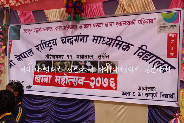 सुर्खेतको वीरेन्द्रनगर नगरपालिका वडा नं. ११ मा रहेको नेपाल राष्ट्रिय चन्द्रगंगा माध्यमिक विद्यालयमा कक्षा ८ मा अध्ययनरत विद्यार्थीहरुले खाना महोत्सवको आयोजना गरेका छन् ।
