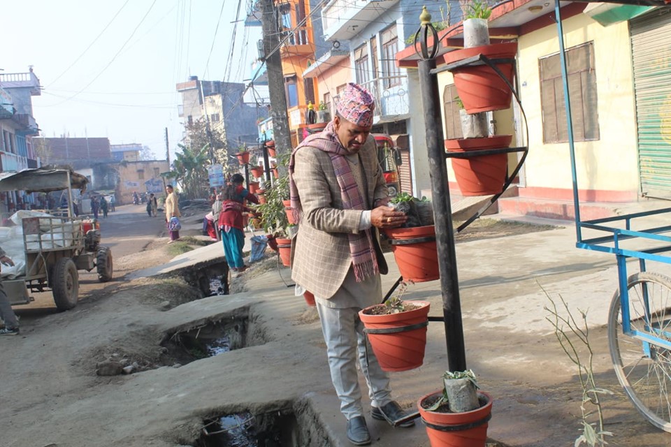 भगवतीटोलमा ठडिए स्ट्याण्ड गमला