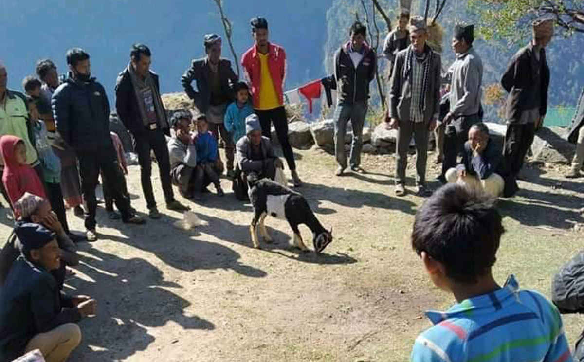 बिसं २०६३, साल असार महिनामा वर्षा नभएपछि बोकाको वोलि चढाएर पानी मागेका उनिहरुले कोरोना भाइरस गाउँमा नआओस् भन्दै वलि चढाएका हुन् । स्थानियका अनुसार बिसं २०३६ सालमा पनि नेपालमा महामारी फैलिएकोे वेला बोकाको वलि चढाएर पूजा गरेका थिए । मष्टादेवताका पुजारी कवि उपाध्यायका अनुसार गाउँमा पटक पटक खडेर परेको बेलामा पनि बलि दिने चलन थियो ।