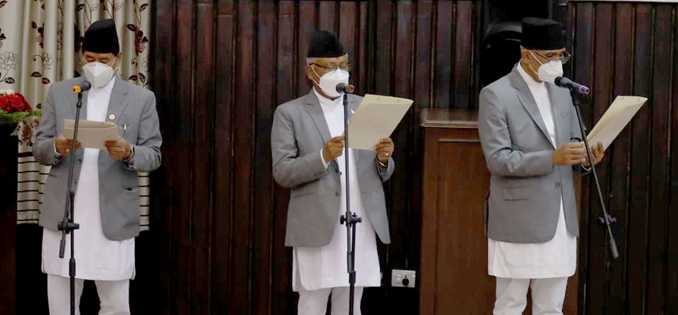 प्रधानमन्त्री केपी शर्मा ओलीको सिफारिसमा बुधबार मन्त्री नियुक्त भएका तीन जनाले पद तथा गोपनीयताको शपथ ग्रहण गरेका छन् ।