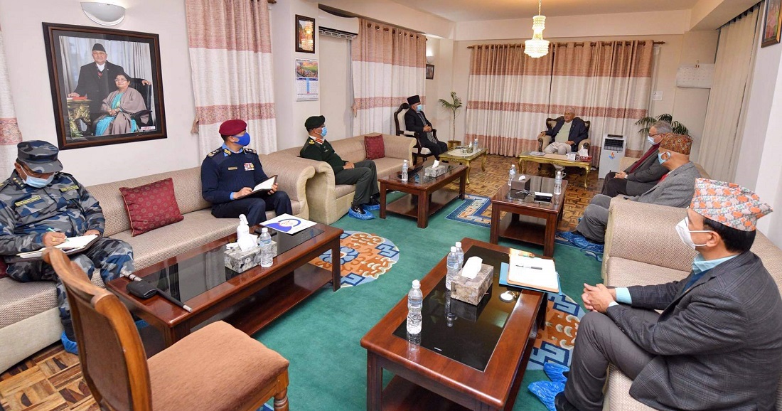 प्रधानमन्‍त्री निवास बालुवाटारमा चारवटै सुरक्षा निकायका प्रमुखहरूलाई बोलाएर प्रधानमन्‍त्रीले यस्तो निर्देशन दिएका हुन्। बालुवाटारको सुरक्षा छलफलमा अर्थमन्त्री विष्णु पौडेल, गृहमन्त्री रामबहादुर थापा र प्रधानसेनापति पूर्णचन्द्र थापा, नेपाल प्रहरीका महानिरीक्षक शैलेश थापा, सशस्त्र प्रहरी बलका महानिरीक्षक शैलेन्द्र खनाल, राष्ट्रिय अनुसन्धान विभागका प्रमुख गणेश अधिकारीलगायत उपस्थित थिए।