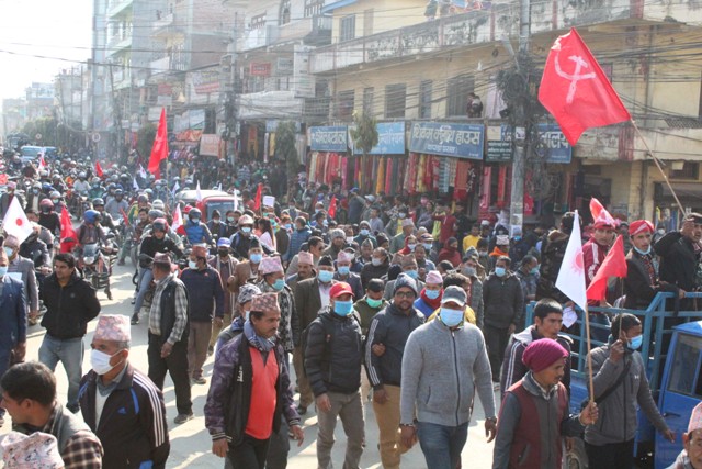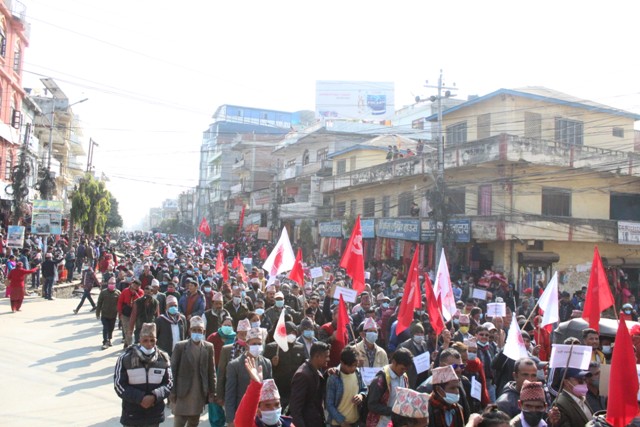 नेपाल कम्युनिस्ट पार्टी (नेकपा) को प्रचण्ड–माधव समूहले सुर्खेतमा ‘शक्ति प्रर्दशन’ गरेको छ । संसद विघटनको विरोधमा मंगलबार प्रदेश राजधानी वीरेन्द्रनगरमा ‘शक्ति प्रर्दशन’ गरेको हो ।