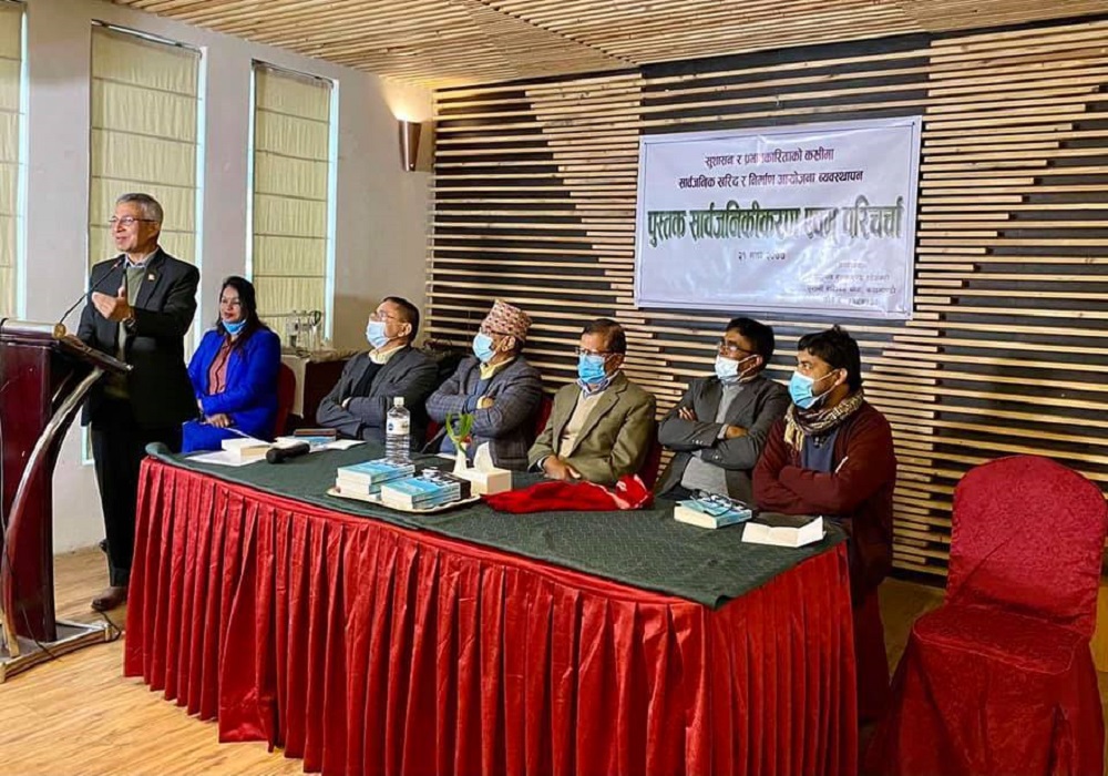 ई. प्रा.डा. राजेन्द्रप्रसाद अधिकारीको पुस्तक ‘सुशासन र प्रभावकारिताको कसीमा सार्वजनिक खरिद र निर्माण आयोजना व्यवस्थापन’ सार्वजनिक भएको छ ।